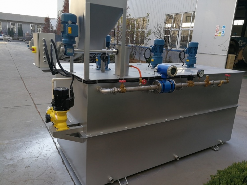 該裝置可將粉狀高分子聚合物(或其他類似粉狀物料)如硫酸鋁、氯化鋁、堿式氯化鋁 (PAC)、硫酸鐵、氯化鐵、聚丙烯酰胺(PAM)、高錳酸鉀、活化硅酸(水玻璃)、粉末活性炭、有機聚合電解質(zhì) (Polymers)等配制為規(guī)定濃度溶液的成套設(shè)備。溶液制備全過程自動、連續(xù)。